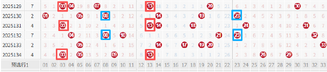 红球尾数是指每个号码的个位数,上期开出了2组同尾号03、蓝球开出12。
